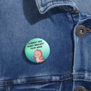 The Vibe: I was supposed to do the dishes, but now I’m researching the history of salt. Featuring a tiny pink dinosaur with a backpack and a flag, this pin celebrates the “side quests” that make life interesting. It’s a badge of honor for the curious and easily distracted.
